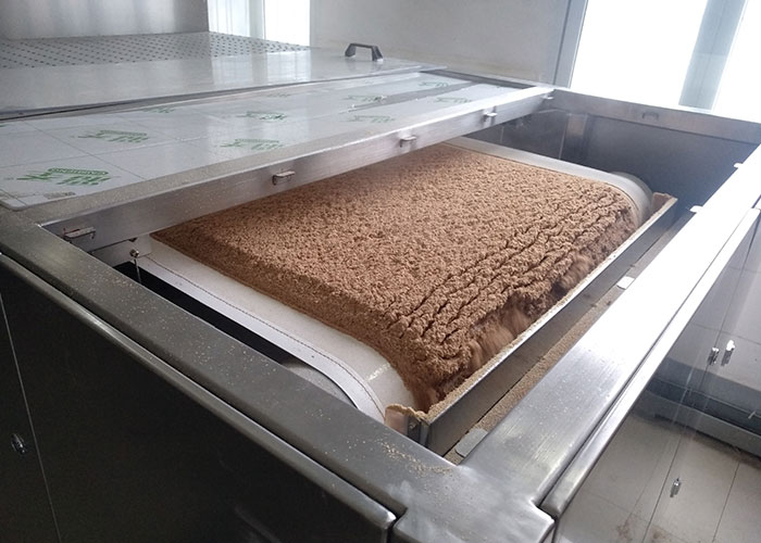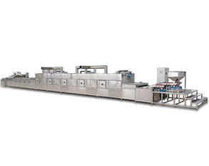 微波干燥是物料中水分大量吸收微波能,使分子間產生急劇的摩擦碰撞,呈現顯著的熱效應,物料表面和內部的溫度同時迅速升高,蒸發物料中的水分,從而將微波能轉化為熱能進行物料干燥。